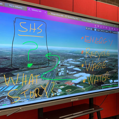 At Stillwater Middle School, there is a large scale map of the Saint Croix River embedded in the floor tile adjacent the Media Center. Interesting at first, countless feet have traversed over it giving little or no attention to the stories (past or present) it can tell. In May 2023, in concert with a Synergy Club Design Jam event, TiS used the opportunity to bring data from the Digital Twin to life in a different, yet no less relevant context.